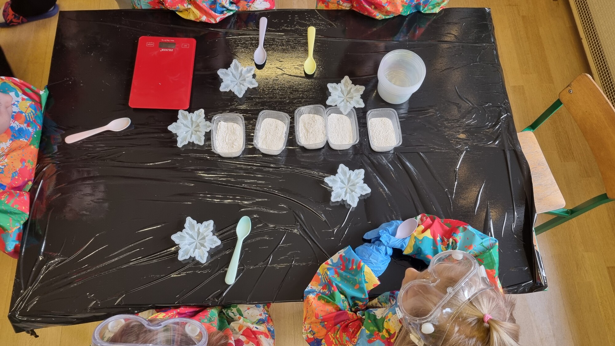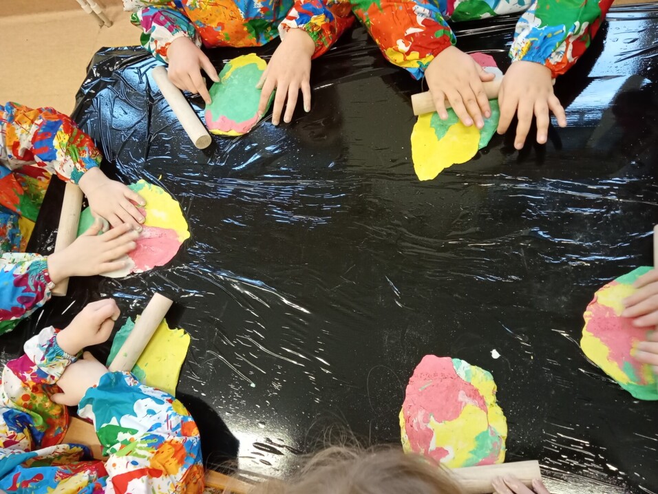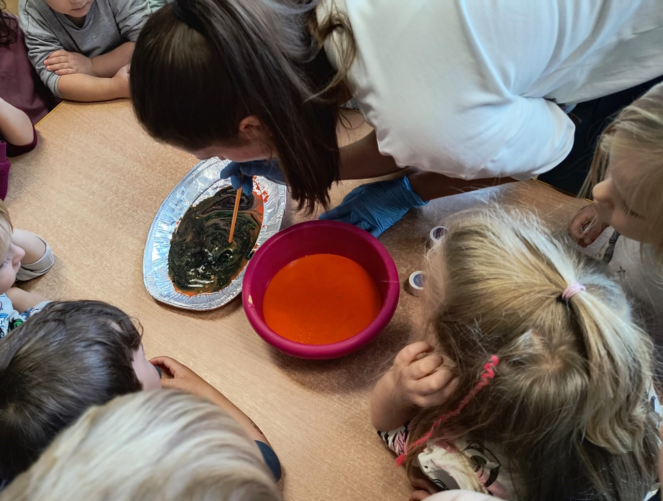Pierwsze zajęcia angażowały głównie wzrok i węch, pozwalając dzieciom stworzyć kolorowe, pachnące i błyszczące obrazki. Kolejne zajęcia były wciąż kolorowe, ale pozostawiły przestrzeń dotykowi. Dzieci własnoręcznie wykonały świeczniki z gliny, barwiąc, ugniatając, wałkując, aż wreszcie ostatecznie nadając pracy kształt jesiennego liścia. Na trzecich zajęciach przedszkolaki zamieniły się w małych naukowców, precyzyjnie odmierzając potrzebne składniki do stworzenia figurek z gipsu polimerowego.